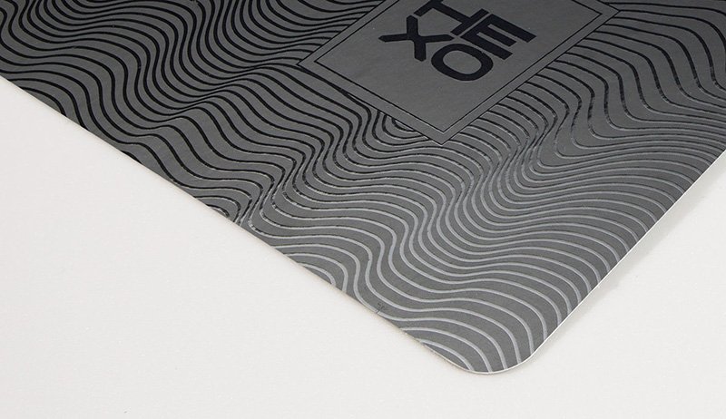 Combination between embossing and foil stamping. It creates a 3D motif that features a foil finish.
